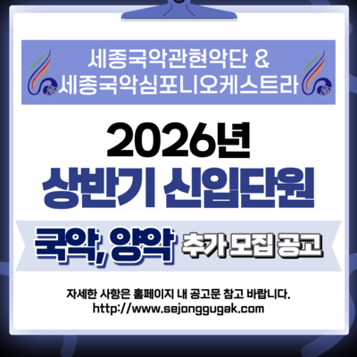 - 2026년도 상반기 신입단원(국악, 양악) 모집(추가)… 2026-03-26