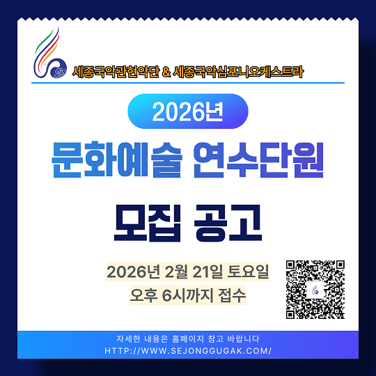 - 2026년도 상근 연수단원(기획자 1명, 연주자 1명)… 2026-01-31